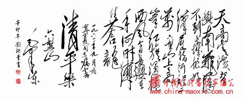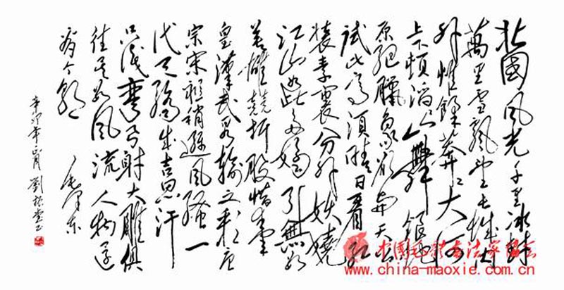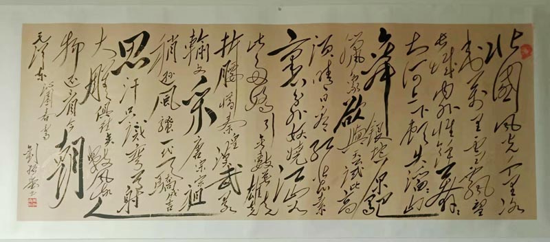 劉振堂,男,漢族 ,1951年8月生,陜西洛川縣人,大專文化。現為中國毛體書法家協會終身會員,資深毛體書法家,陜西炎黃書畫院院士,上海中華書法家協會會員,西安毛澤東敬覽館館員,專職毛體書法。 1975年4月曾在西安美術學院培訓班學習。1985年工筆畫釋迦牟尼佛祖立像圖,曾受到原陜西美術家協會副主席著名版畫家修軍先生的高度贊賞,并題詞鼓勵。1994年春,書法作品參展上海中華書法協會舉辦的全國書畫大賽,獲毛筆書法四段位證書,作品隸書《白石神君碑》獲二等獎。1996年國畫線描《無量佛》被日本友人購藏。1997年大型木刻書法屏風及牌匾毛澤東詩詞《清平樂 六盤山》,《沁園春 雪》,被延安市教委,延煉石油集團,洛川縣賓館購藏。2006年至2013年曾受到著名書法家王改民先生、郭盛力先生等人指點。2009年加入“中國毛體書法家協會終身會員”。 2016年作品《紅色經典》在'在國之韻'書畫網絡電視臺邀請展榮獲金獎并授予“杰出書畫家”稱號。