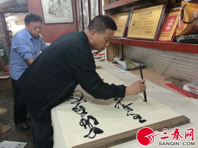 中國書畫家齊壽郎和書畫家王六一老師在筆畫現場。